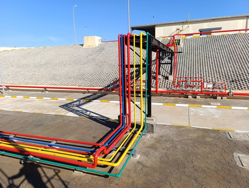 Dans le domaine du génie civil et de la construction, nos activités comprennent la pose et le raccordement de canalisations, la construction de réservoirs de stockage, de fondations et d'ouvrages en béton armé, le montage de charpentes métalliques, ainsi que le développement de bâtiments techniques et de stations de pompage. En matière de fourniture et pose d’équipements, nous livrons et installons des systèmes critiques tels que des torchères (torches GPL), des réseaux de lutte contre l'incendie, des pompes de maintien de pression, des unités de stockage et des équipements de sécurité industrielle. Ces projets témoignent de notre capacité à gérer des projets complets, du génie civil au montage mécanique et à l'assistance à la mise en service.